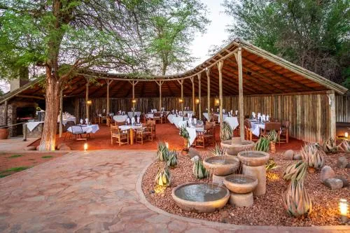 Located on the edge of the Kalahari, Bagatelle offers luxurious chalets and rooms set among red dunes. Accommodation includes dune chalets on stilts and savannah chalets built with straw bales. The ranch provides activities such as nature drives, Bushman walks, cheetah watching, and stargazing, along with a spa.